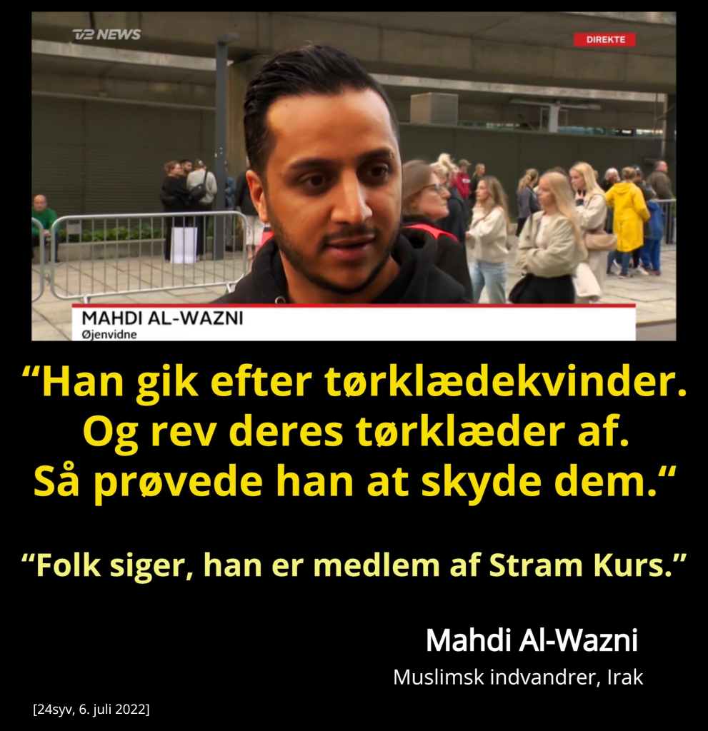 Jeg havde ellers et godt indtryk af Mahdi Al-Wazni , fordi han – mig bekendt – gav politiet den video, han optog, hvilket hjalp politiet til meget hurtigt at identificere mordersvinet og arrestere ham …