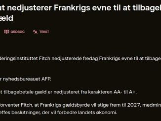 Kreditvurderingsinstituttet Fitch nedjusterede fredag Frankrigs evne til at tilbagebetale gæld – fra AA- til A+ Taget herfra Institut nedjusterer Frankrigs evne til at tilbagebetale gæld […]