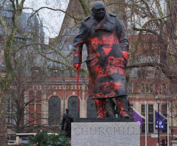 »Der er en genopstået hård venstrefløj, som nu engagerer sig i sekterisk politik, og opmuntret af dette er Churchill-statuen i London blevet vandaliseret i løbet af natten med påskriften »Globaliser intifadaen!« og beskyldninger om, at han var zionist.