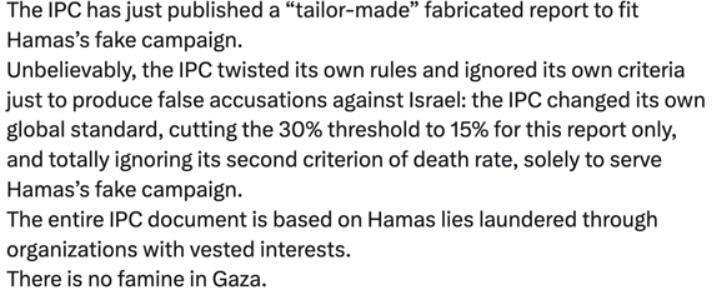 Men denne gang har IPC måtte ÆNDRE i deres egne definitioner og halvere tærsklen for “sult”, for at dere løgne passede med hamas tal !