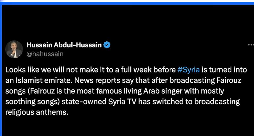 Verdenspressen er havnet i babylonisk forvirring over lynrevolutionen i Syrien. Ingen havde set den komme, og alle optioner bliver luftet i spalter og på tv-skærme af kommentatorer og eksperter, der har travlt med at forklare, hvorfor de umuligt havde kunnet se, hvad der var under opsejling. Nogle jubler over den forventede frihed i troen på fredelig sameksistens mellem Syriens mange folkeslag og kulturer. Andre ser for sig et Mellemøstens Afghanistan, hvor de nye magthavere vil etablere en ortodoks islamisk stat med sharia som grundlov. Og så er der dem, der indvarsler en ny storhedstid for den originale udgave af Islamisk Stat, der stadig kontrollerer betydelige områder af Syrien. Endelig er der medier, der hepper på Tyrkiet, som den nye stærke mand i magtspillet om Syriens fremtid
