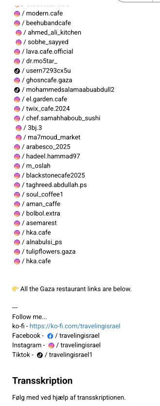 Her er hans liste over eksisterende restauranter i Gaza: