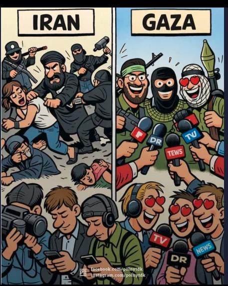 Iran støttede jo hamas og hizbollah, så derfor demonstrere hamaszombier ikke. Undertrykte selvcensurerede. Heller ikke DR eller tv2 har noget at skulle have sagt.