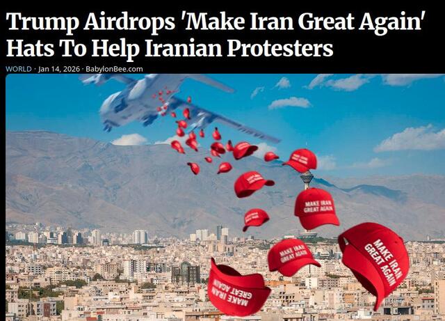 I det allermindste bør Trump lade amerikanske fly smide masser af rifler + ammunition ned til demonstranterne. Det er selvfølgelig ikke så nemt som det lyder, men både USA og navnlig Israel har agenter i Iran, der kan sikre af de våben havner hos demonstranterne – og så er det jo ikke så sjovt for revolutionsgarden pludselig at møde væbnet modstand , når der skyder mod dem 🙂