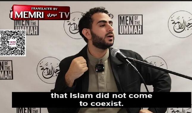 Memri skriver: Den islamiske lærde Mohammad Nusairat fra Chicago siger i foredraget den 14. november 2025, at islam ikke er ment til at sameksistere med andre religioner, og forklarer: “Islam er højt hævet højt, og intet er hævet over islam.”