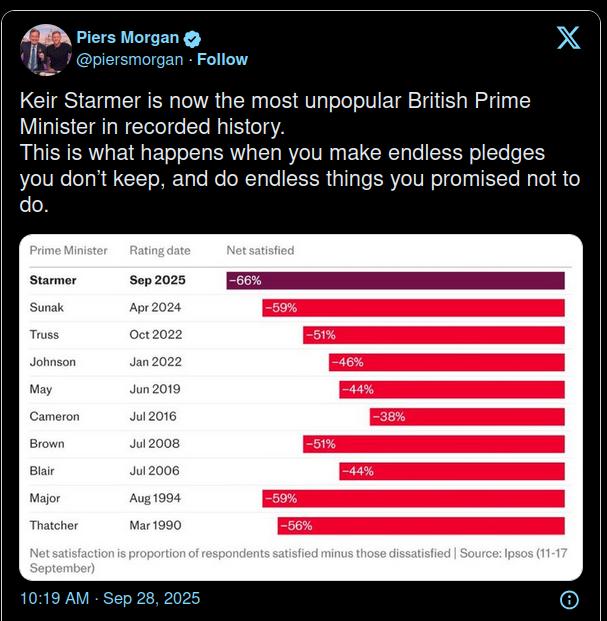 Starmer har et fast greb om magten, og ikke mindst om politiet, som jo mestendels består af muhamedanere! Den britiske hær er nu en skygge af sig selv, så glem dem. Nigel Farage står stærkt i meningsmålingerne men får ikke en chance, hans parti er et “arbejderparti” der ikke danser med de andre, og hans forbindelser med “systemet” er formentlig nul. Man ordner ham og partiet med juridiske tricks. Måske har briterne haft det sidste frie valg..