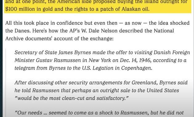 Han viser bla. at præsident Trumann i 1946 tilbød Danmark 100 mill $ i guld for at USA købte Grønland !