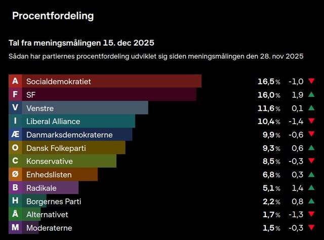 12 partier er klar til folketingsvalg i 2026 og indgår derfor i målingen. Moderaterne er det parti, der har den laveste opbakning.