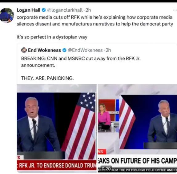 Selvfølgelig kunne fake-news-msm ikke vise (hele) RFK jr 5 min lange tale – det var der ikke plads til ,mens de brugte timevis påflosklerne fra Obama, Kamala Harris og Walz på DNC