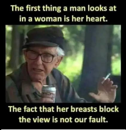 Det er da velkendt at mænd får en dosis dopamin ved at se på bryster. Hvis gimpen ikke vil have at mænd glor på sine (kæmpe) bryster, så skal hun lad være at fremhæve dem på den måde.