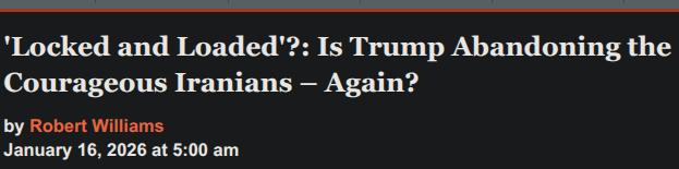 The question becomes: Is Trump actually going to leave these psychopaths in power and effectively thwart the brave, unarmed Iranians from ridding themselves of an armed government that has been suppressing, torturing and slaughtering them in the streets over the past 47 years?